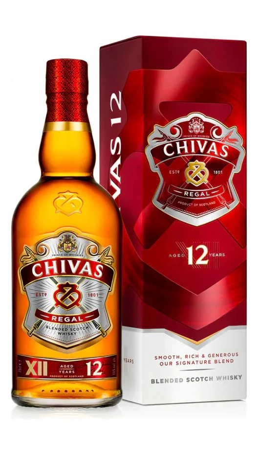 Crafted in Scotland, Chivas Regal 12 Year Old is a premium blended Scotch whisky made from a selection of the finest malt and grain whiskies, each matured for at least 12 years. It offers a harmonious balance of wild herbs, heather, honey, and ripe orchard fruits, layered with a creamy richness and smooth finish. Known worldwide for its elegance, it’s a perfect choice for both collectors and whisky enthusiasts.